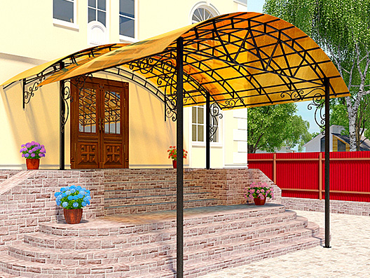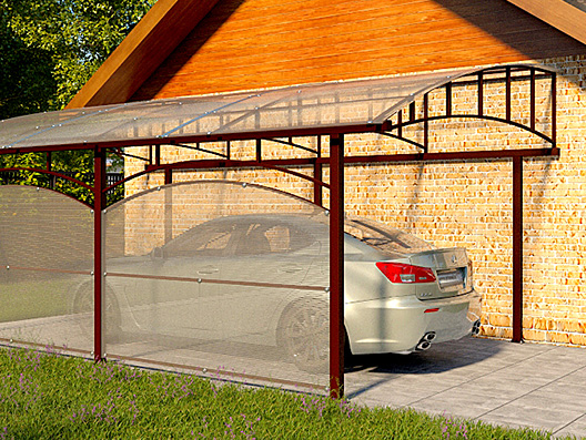 Благодаря полупрозрачной поликарбонатной крыше и изящному каркасу из профилей навес эстетичен и надежен. Весь уход ограничивается помывкой мягкой губкой или тряпкой, смоченной в чистой воде. Мы производим конструкции разных размеров — от небольших козырьков над крыльцом площадью в пару кв. метров до крытых парковок на несколько автомобилей.